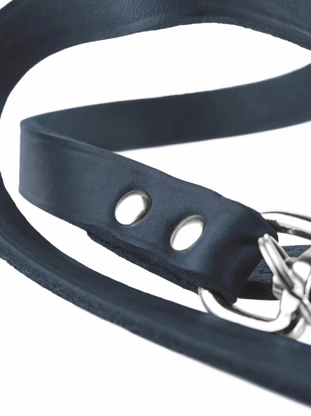 Deze blauwe hondenriem is gemaakt van rundleer. Dankzij een royale toevoeging van olie en een natuurlijk verfproces, is de riem ook bestand tegen zware belasting. Hierdoor is deze hondenriem ook goed geschikt is voor hondensporten. U kunt de riem drievoudig verstellen.