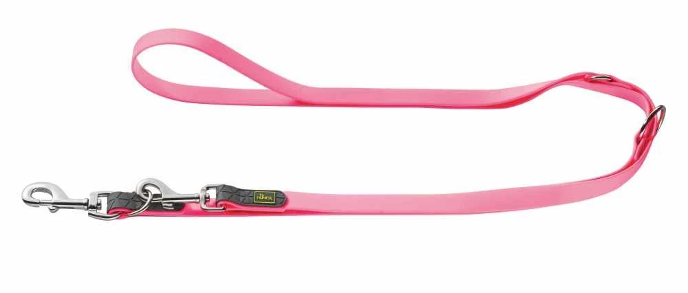 Verstelbare riemen kunnen verschillende andere hondenriemen van verschillende lengtes vervangen, wat ze zo praktisch maakt. Dankzij de drie verstelmogelijkheden past deze riem zich moeiteloos aan elke situatie aan: een lange riem om te wandelen, een korte riem om te trainen of een wandeling door de binnenstad. De lijn is in een mum van tijd correct ingesteld. Het innovatieve kunststof materiaal is duurzaam, scheurvast en waterdicht en daardoor bijzonder onderhoudsvriendelijk. Vuil kan gemakkelijk worden afgewassen, nattigheid kan worden afgedept. De karabijnhaken en ringen zorgen voor bevestiging aan de halsband of het tuigje.