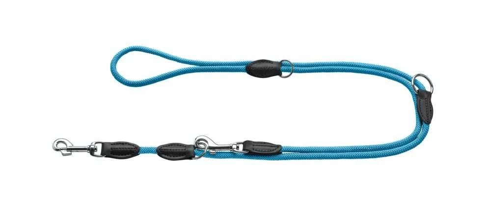 Dit is een mooie teal hondenriem die is gemaakt van duurzaam polyamide touw. Het materiaal is waterafstotend en weerbestendig. De riem heeft dan ook weinig onderhoud nodig, het vuil kunt u er met een vochtig doekje vanaf halen. Deze hondenriem kan drievoudig worden versteld.