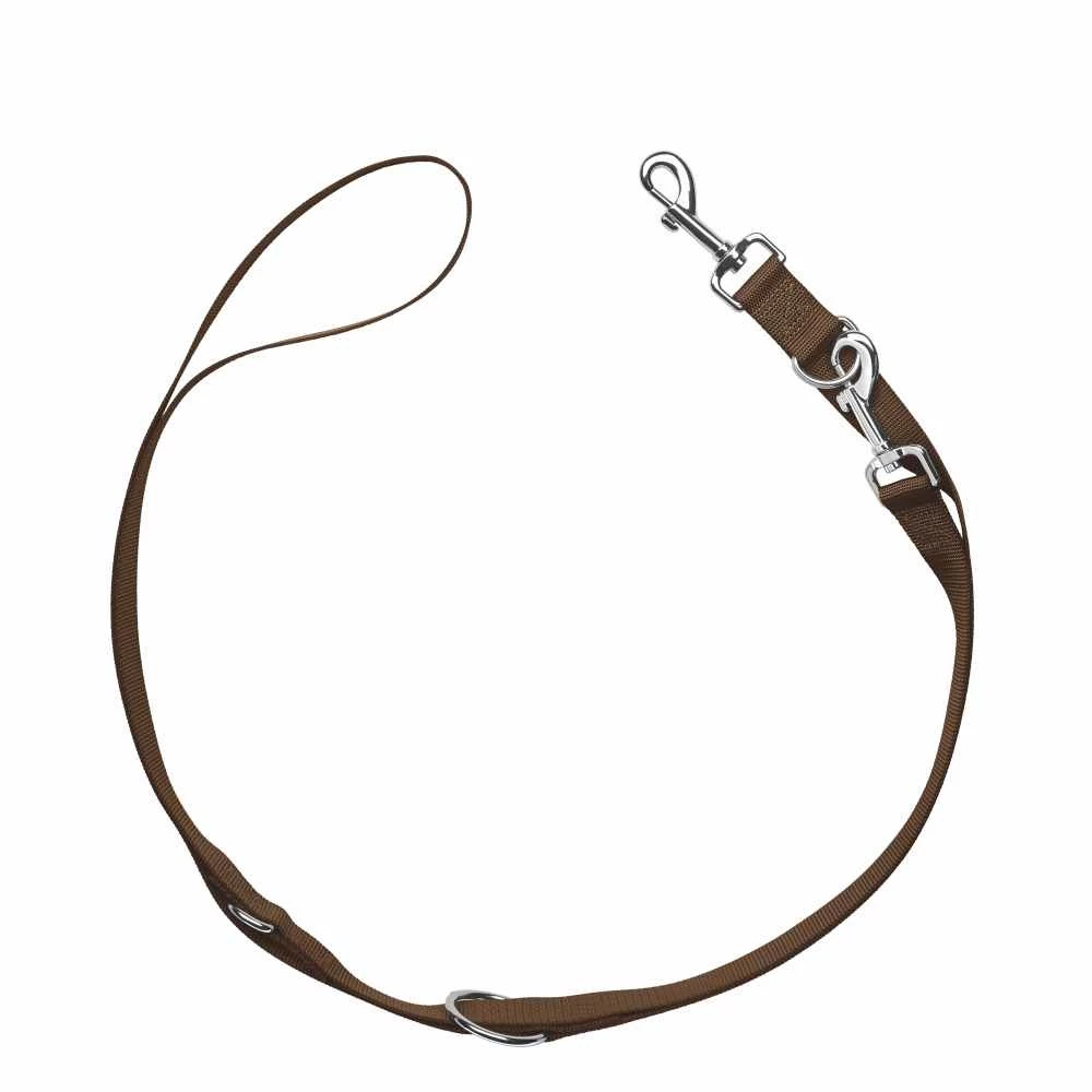 Dit is een moderne bruine hondenriem. De riem is zacht, soepel en lichtgewicht. De hondenriem is gemaakt eersteklas polyester. Dit materiaal is extreem scheurvast en lichtgewicht, en verliest zijn vorm niet. Bovendien is het in een oogwenk droog en gemakkelijk schoon te maken. U kunt de riem drievoudig verstellen.