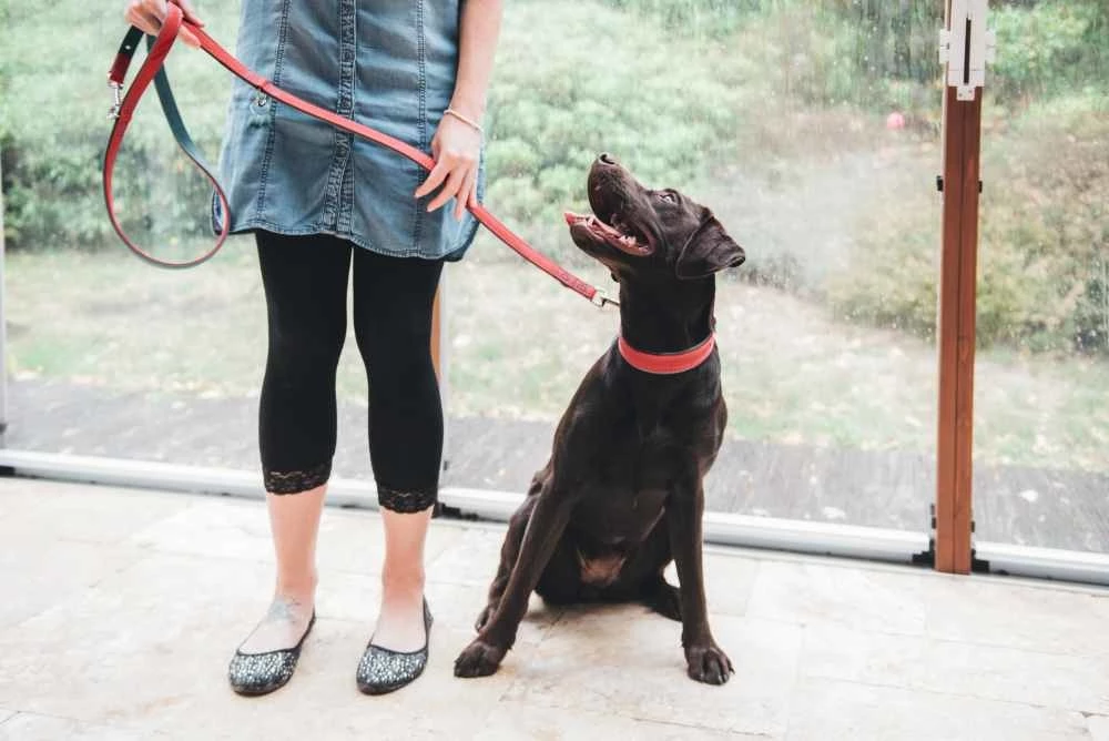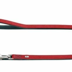 Een zachte en soepele rode leren hondenriem, die is gemaakt van extra zacht nappa leer. De riem is gevoerd, zodat deze bijzonder comfortabel is voor uw handen. De turquoise stiksels en voering vormen een mooi geheel met de rode kleur. De riem heeft een leuk en afneembaar hangertje, een handvat en is drievoudig verstelbaar.