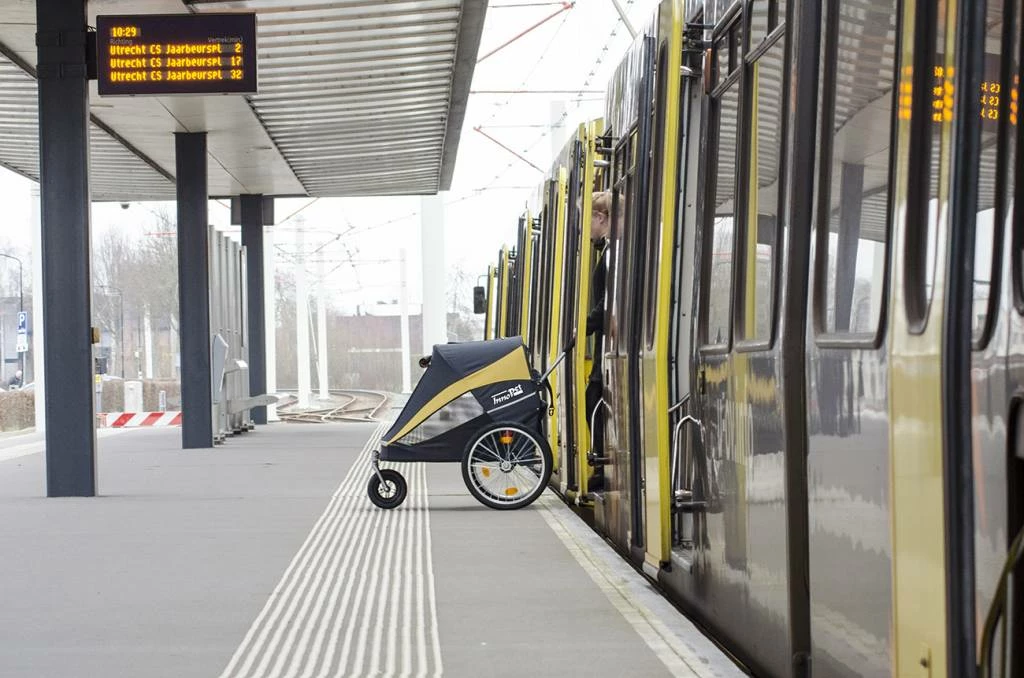 Deze nieuwe versie kan ook als fietskar worden gebruikt: er kan een fietsstang aan bevestigd worden waarmee de kar achter de fiets kan worden gehangen.