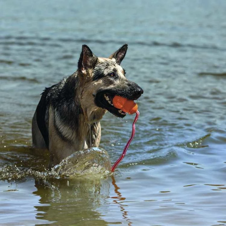 De KONG® Aqua is een drijvend speelgoed met een touw. Het speelgoed zorgt voor plezier en beweging, zowel in als buiten het water. Het rode hondenspeelgoed heeft een vulling van schuim zodat het blijft drijven terwijl uw hond er naar toe zwemt om het op te halen.