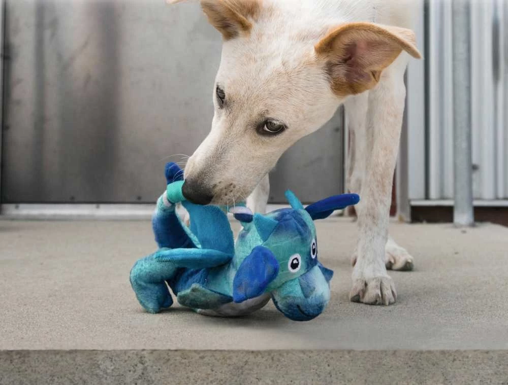 Deze kleurrijke speelkameraadjes hebben een geknoopt touw in hun buik verborgen, dat honden motiveert om uitgebreide trek- en trekspelletjes te spelen. De geïntegreerde pieper biedt een opwindende ervaring voor de zintuigen, terwijl de knisperende geluiden van deze zeer speciale magische vleugels van de draak voor afwisseling zorgen voor de oren van uw hond. Door de zeer lage vulling is het geïntegreerde touw direct voelbaar.