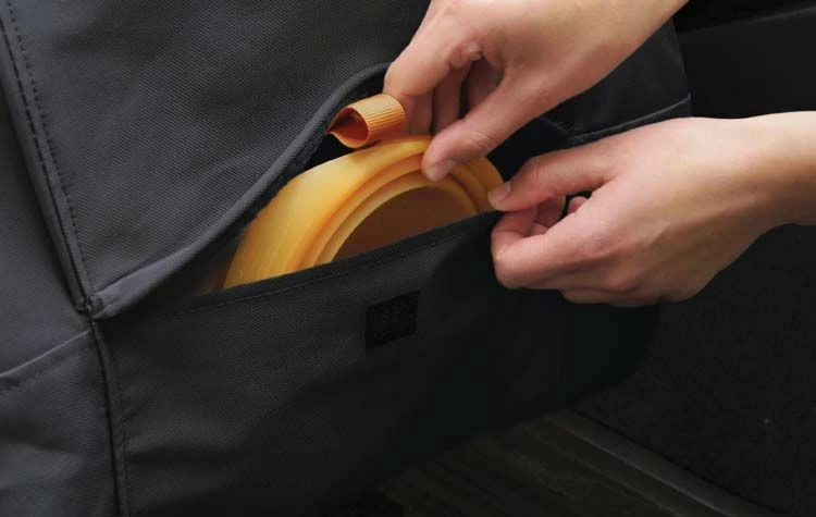 - aan de onderkant van de voorzijde bevindt zich een handig opbergvakje.