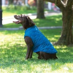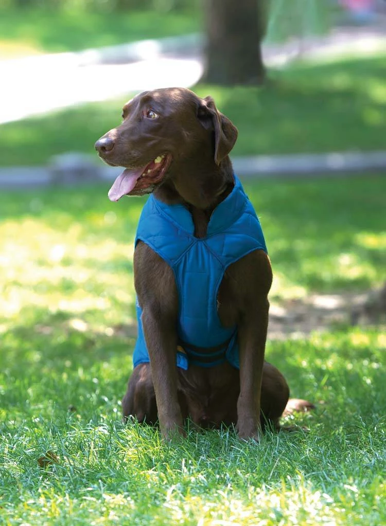 Deze fraaie hondenjas is goed geschikt voor de koude maanden van het jaar. Het bijzondere is dat u de jas aan beide kanten kunt gebruiken, waarbij de ene kant in het blauw is uitgevoerd en de andere kant in het oranje. Dit model jas is speciaal ontwikkeld voor de actievere honden, zodat de hond zich gemakkelijk kan bewegen in de hondenjas.