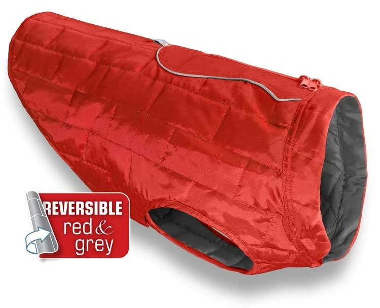 Deze fraaie hondenjas is goed geschikt voor de koude maanden van het jaar. Het bijzondere is dat u de jas aan beide kanten kunt gebruiken, waarbij de ene kant in het rood is uitgevoerd en de andere kant in het grijs. Dit model jas is speciaal ontwikkeld voor de actievere honden, zodat de hond zich gemakkelijk kan bewegen in de hondenjas.