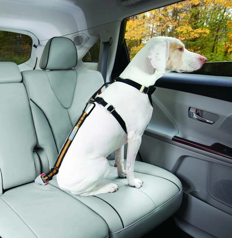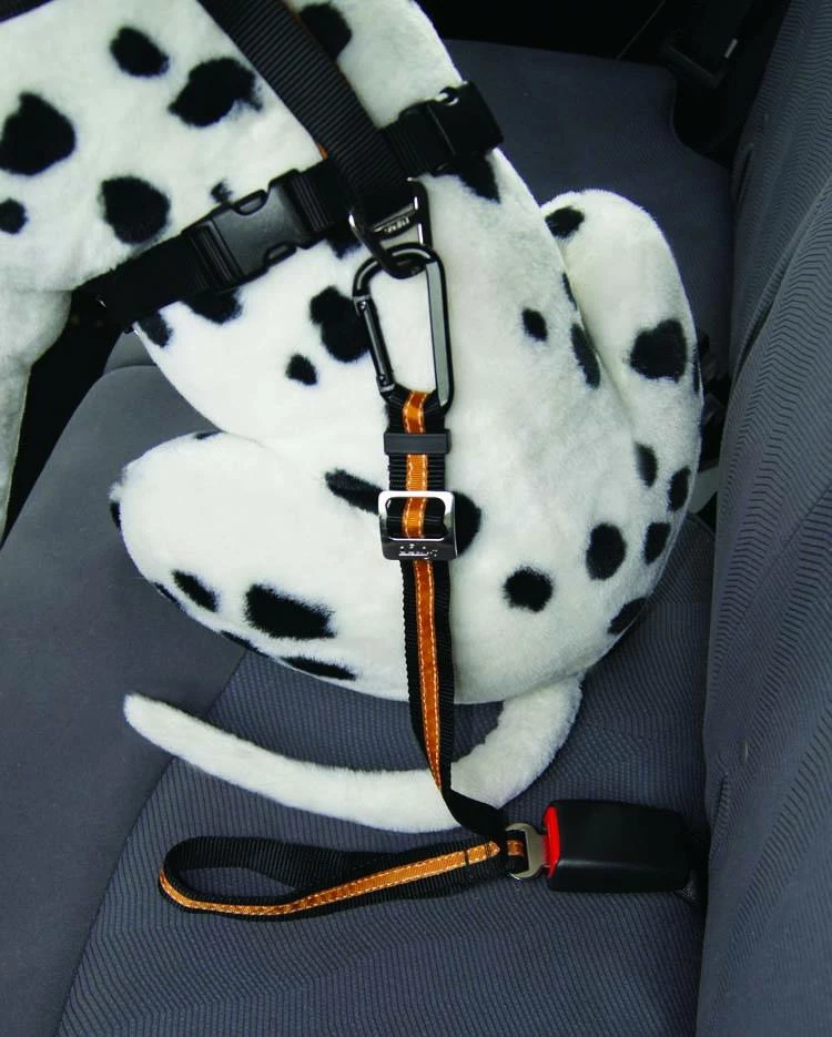 De veiligheidsriem wordt aan de hondenhalsband of het hondentuigje van de hond bevestigd met een karabijnhaak. De veiligheidsriem kan bevestigd blijven, en hoeft niet los gemaakt te worden elke keer dat de hond in en uit de auto gaat.