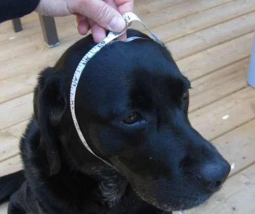 Voor de omvang van het hoofd meet u, met een flexibel lint, de omvang van het hoofd van de hond rondom.