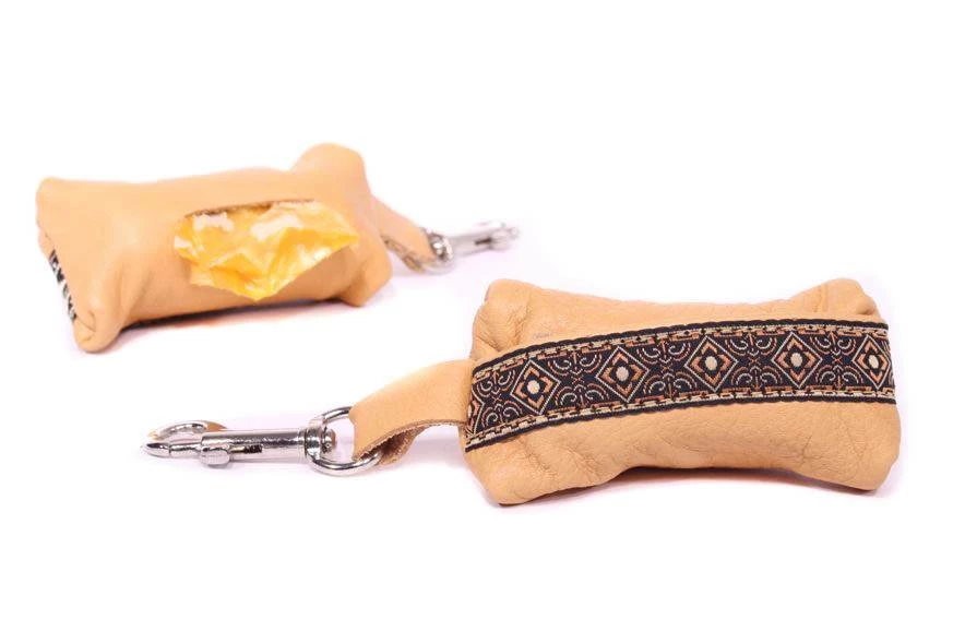 Om mee gezien te worden: een erg mooie poepzakhouder, die geheel met de hand wordt gemaakt van zandkleurig leer. Opvallend is de mooie decoratie, waardoor deze poepzakhouder er bijzonder fraai uitziet. De houder is voorzien van een karabijnhaak, waardoor u deze gemakkelijk kunt vastklikken. Verder is de houder uitgerust met een klittenbandsluiting voor het navullen.