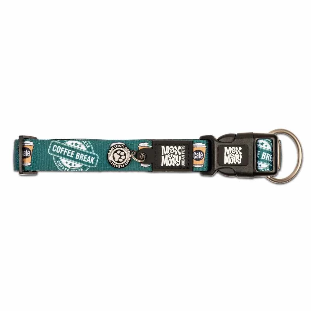 Dit is een hippe en opvallende groene hondenhalsband met een print die is geïnspireerd door koffiebekers. Maak een echte eye catcher van uw hond ! De halsband heeft een gratis Smart ID waarmee u de hond op de handige app Gotcha! kunt registreren. Dit is heel handig om de hond terug te vinden mocht deze verdwalen. De app is gratis te gebruiken voor alle Max & Molly producten. Meer informatie op de website http://www.gotchapet.com/.