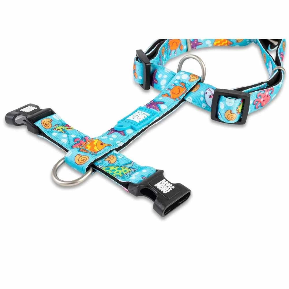 Dit is een hip en opvallend hondentuig met een gezellige nautische print. Maak een echte eye catcher van uw hond ! Het tuig is voorzien van een twee sterke kliksluitingen en heeft twee D-ringen op de rug. Het tuig is aan de binnenzijde gemaakt van neopreen en heeft sterk polyester aan de buitenzijde. Het tuig is op drie plekken te verstellen voor een optimaal pasformaat. Een tuig mag namelijk met de huid meebewegen maar niet uit zichzelf alle kanten op schuiven! Het tuig is bij de borst, op de rug en op de buik te verstellen. U kunt het tuig reinigen op max. 30 graden. De bijpassende verstelbare hondenriem vindt u hier. Ook is er een korte hondenriem leverbaar, deze vindt u hier.