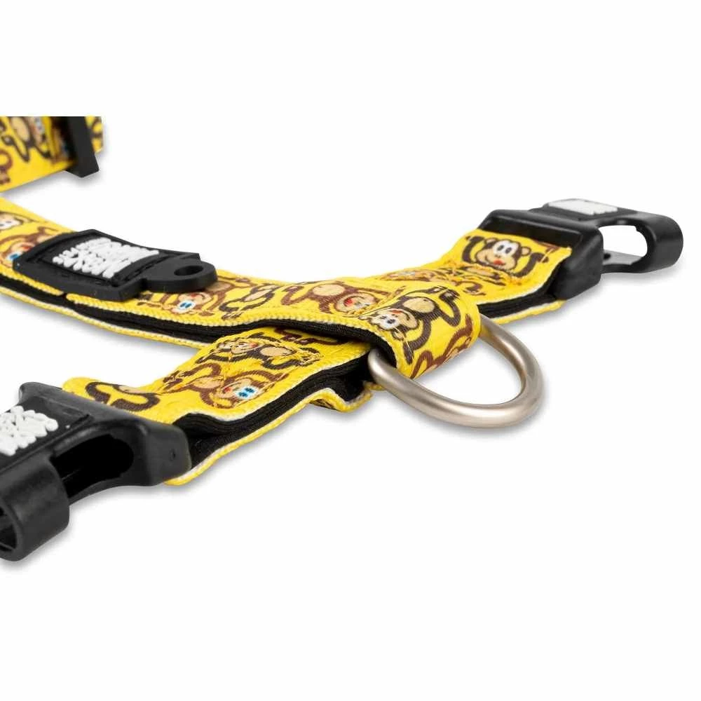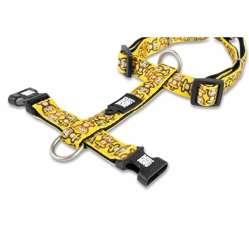 Dit is een hip en opvallend hondentuig met een leuke print met aapjes. Maak een echte eye catcher van uw hond ! Het tuig is voorzien van een twee sterke kliksluitingen en heeft twee D-ringen op de rug. Het tuig is aan de binnenzijde gemaakt van neopreen en heeft sterk polyester aan de buitenzijde. Het tuig is op drie plekken te verstellen voor een optimaal pasformaat. Een tuig mag namelijk met de huid meebewegen maar niet uit zichzelf alle kanten op schuiven! Het tuig is bij de borst, op de rug en op de buik te verstellen. U kunt het tuig reinigen op max. 30 graden. De bijpassende verstelbare hondenriem vindt u hier. Ook is er een korte hondenriem leverbaar, deze vindt u hier.