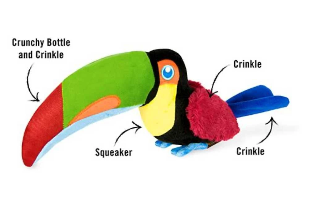 De serie Fetching Flock bestaat uit hele leuke, vrolijke en kleurrijke dierenfiguurtjes. De serie bestaat uit een toekan, adelaar, papegaai en een pauw. Toto de Toekan kan niet wachten om met je harige vriend te spelen en te pronken met zijn coole eigenschappen. Dit knappe speeltje is gevuld met al het kraken, piepen en kreuken waar je hond om kan vragen!