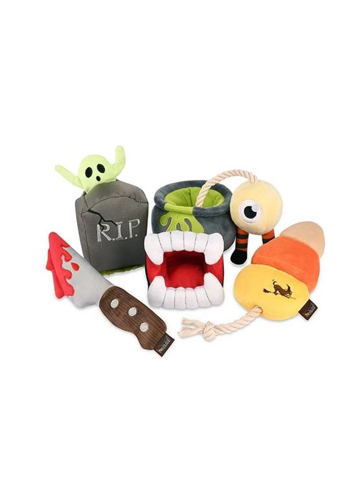 De Howling Haunts-knuffelcollectie van P.L.A.Y bevat een spooktaculaire set griezelig en schattig speelgoed dat boordevol betoverende eigenschappen zit en je harige vriend zeker zal laten huilen van vreugde. Nadat alle Halloween-traktaties op zijn, zullen ze dankbaar zijn dat ze dit smakelijke speelgoed hebben om hun tanden in te zetten!