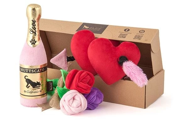 The love collectie van P.L.A.Y. is te schattig. Kies je voor het leuke cupido hart, de bos rozen of toch de fles bubbels? De twee hartjes zitten door middel van een speeltouw aan elkaar vast.Â