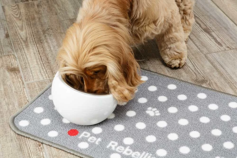 Deze mat plaatst u onder de drinkbak en/of de voerbak van uw hond of kat. Hiermee voorkomt u dat voedsel of water op uw tapijt of parket belandt. De leuke print maakt deze placemat ook een opvallende aanvulling op uw interieur! De mat is voorzien van een anti-slip laag waardoor deze niet over de vloer zal schuiven.