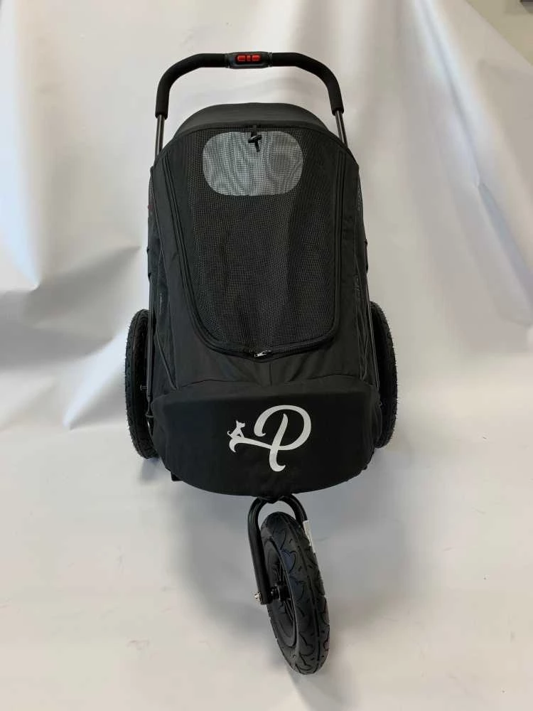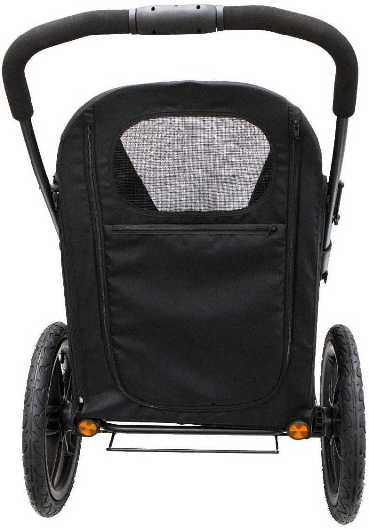 Dit is een fraaie hondenbuggy en hondenfietskar in één. De buggy/fietskar is geschikt voor honden tot 30 kg. Voor extra comfort, is de hondenfietskar / hondenbuggy voorzien van hoogwaardige luchtbanden. U bevestigt de buggy met een koppelstuk (inclusief) aan een fiets. U kunt dit doen aan het achterwiel van de fiets, aan beide kanten van de fiets. Dit kan ook bij elektrische fietsen. De buggy / fietskar wordt compleet geleverd met een regenhoes en een pomp om de banden mee op te pompen. De duwstang is 101 cm hoog.