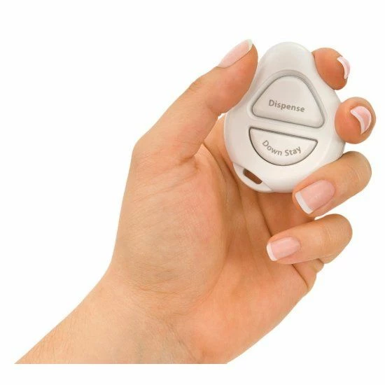 U bedient de hondentrainer met de afstandsbediening, die een bereik heeft van ca. 30 meter. Het apparaat heeft twee verwisselbare schijven die geschikt zijn voor kleine of grotere brokjes.