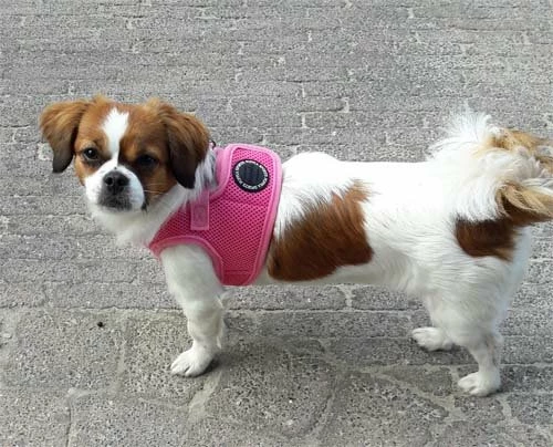 Dit praktische hondentuigje is zacht voor uw hond. Het is voorzien van een klittenbandsluiting op de rug. Uw hond stapt in het tuigje dus u hoeft het niet over het hoofd te trekken. De buikriem is verstelbaar. Het tuigje is uitgevoerd in roze kleur.Het  tuigje heeft verder nog een extra kliksluiting met twee D ringen.