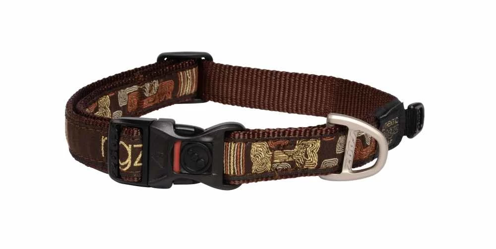 Deze bruine hondenhalsband van Rogz komt uit de serie “Fancy Dress”. Deze serie biedt u hippe nylon halsbanden, riemen en tuigen van uitstekende kwaliteit.