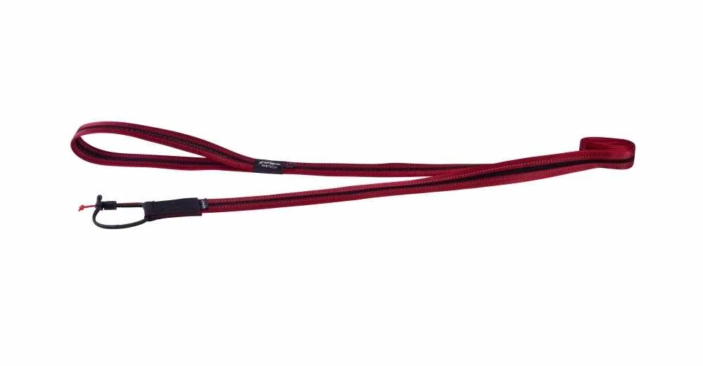 Een ultra lichtgewicht rode hondenriem die u gemakkelijk kunt oprollen. De riem heeft een extreem sterke koordsluiting van helium, verder zorgen de reflecterende stiksel voor extra zichtbaarheid in het donker.