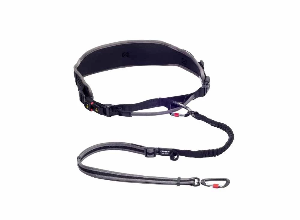 Dit is de ultieme handsfree combinatie van een heupriem met een hondenriem die zowel comfortabel als lichtgewicht is. De verstelbare hondenriem is bevestigd met een sterke afsluitbare karabijnhaak. De riem heeft een schokabsorberende band die de trekbelasting voor u en uw hond vermindert. De gevoerde heupriem is ontworpen voor veiligheid en efficiëntie met een nood ontgrendeling. De heupriem beschikt over een handig tasje voor het opbergen van spulletjes zoals poepzakjes, sleutels e.d.