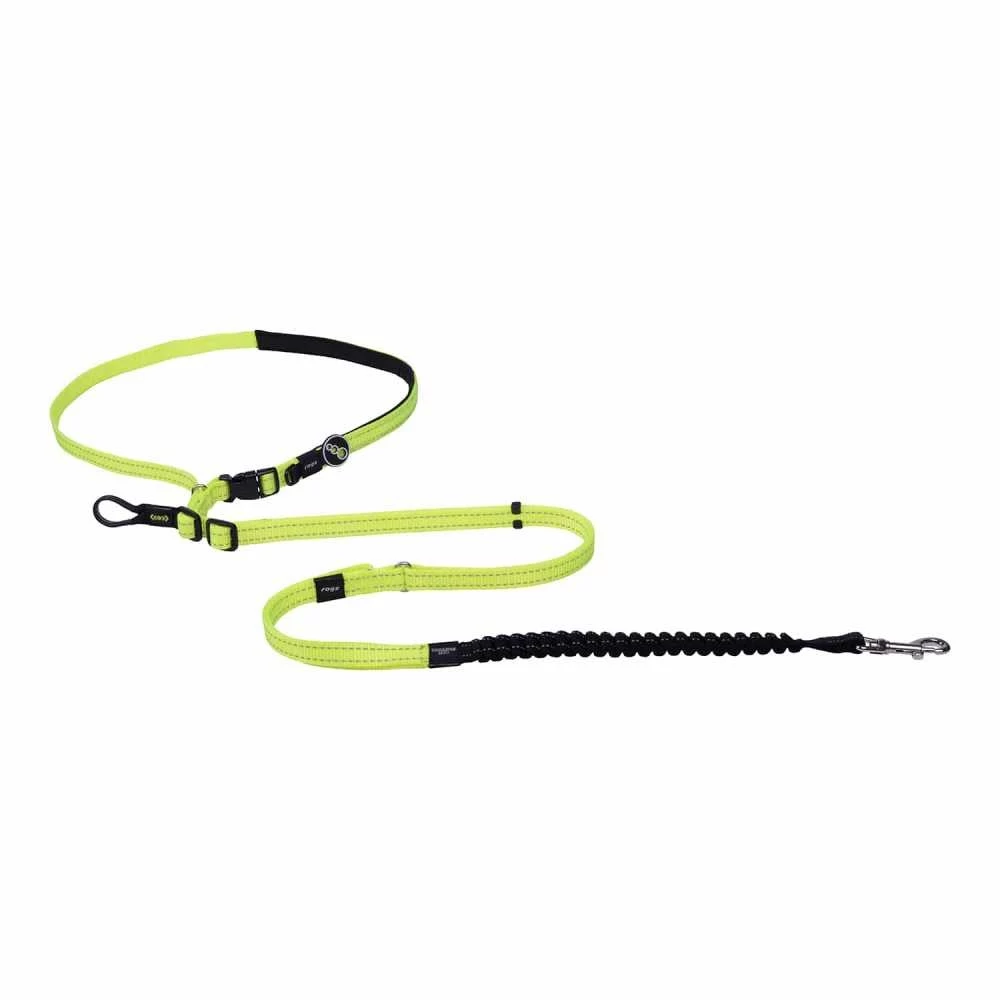 Deze gele hondenriem is perfect geschikt als u handsfree met uw hond wilt joggen of lopen. Deze flexibele hondenriem rekt uit wanneer er aan wordt getrokken.