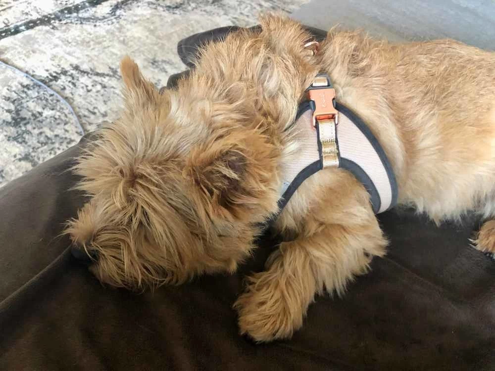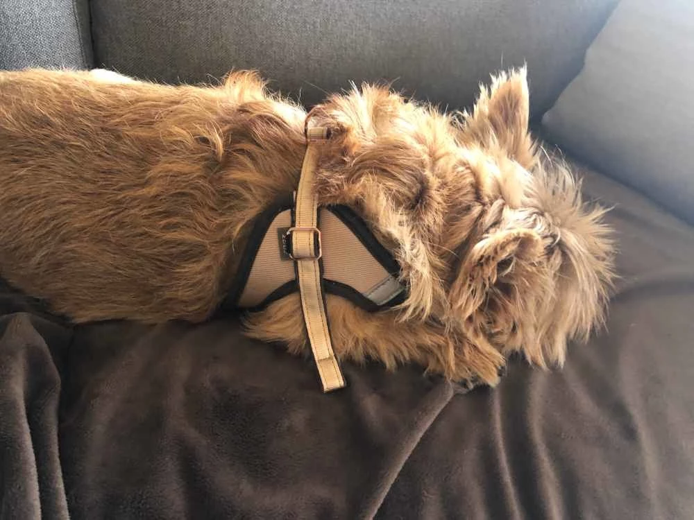 Het tuigje is voorzien van reflecterende banden voor extra zichtbaarheid.