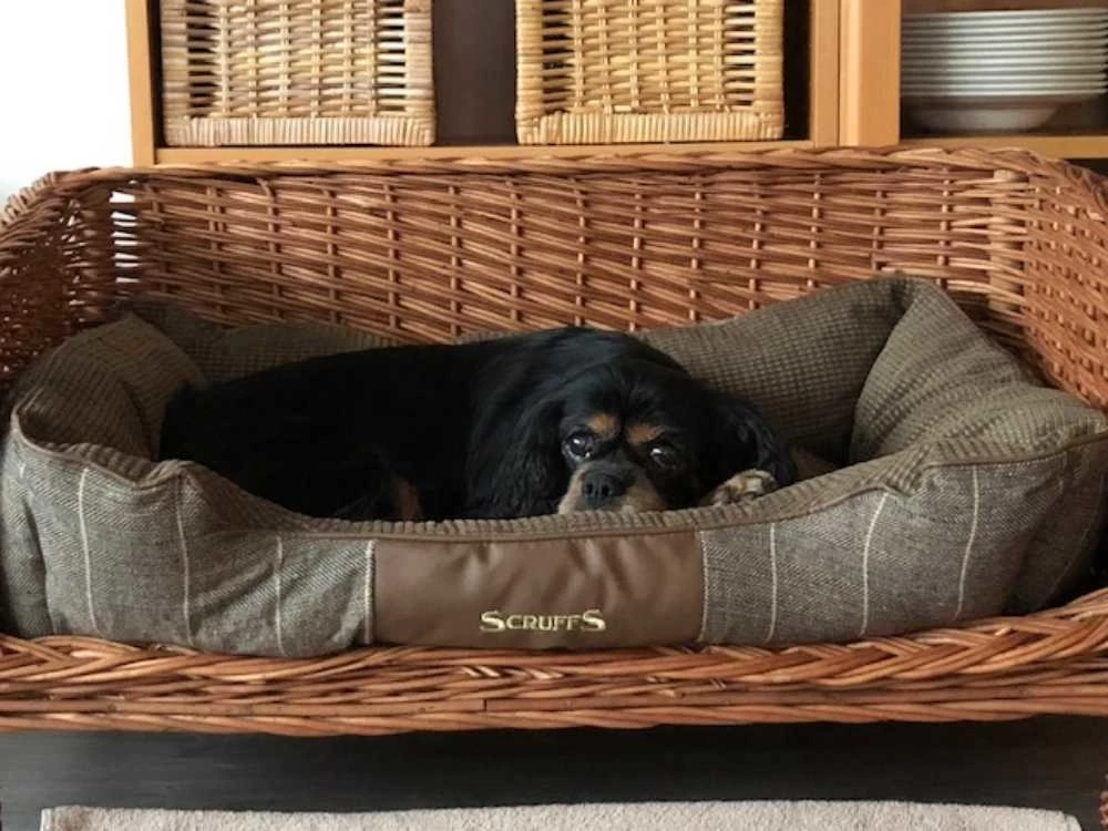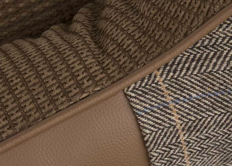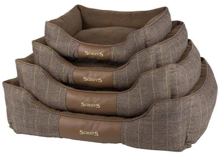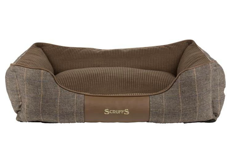 Deze hondenmand heeft een chique uitstraling. De buitenzijde van de hondenmand is uitgevoerd in een bruine tweed stof en de binnenzijde in een contrasterende Chenille stof. De mand biedt een heerlijke rustplaats voor uw huisdier. De mand is afgewerkt met biezen van imitatie suède. Aan de voorzijde is het geborduurde logo van Scruffs verwerkt. De onderkant van de hondenmand is voorzien van een anti-slip laag.