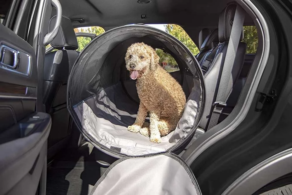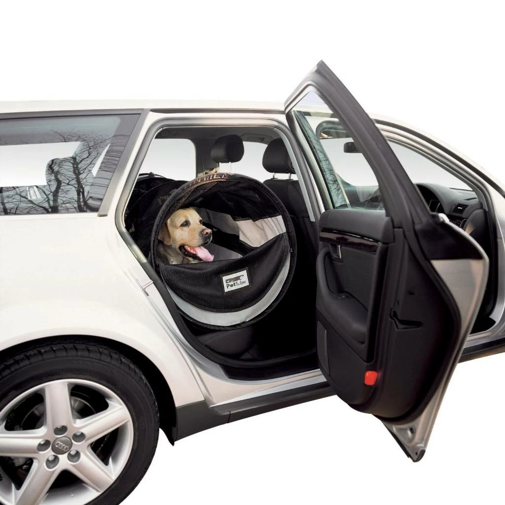 Het bijzondere aan dit ontwerp is de mogelijkheid om de Pet Tube in te schuiven naar gelang u behoefte heeft aan meer of minder ruimte voor de hond, of om de kennel aan te passen aan de achterbank.