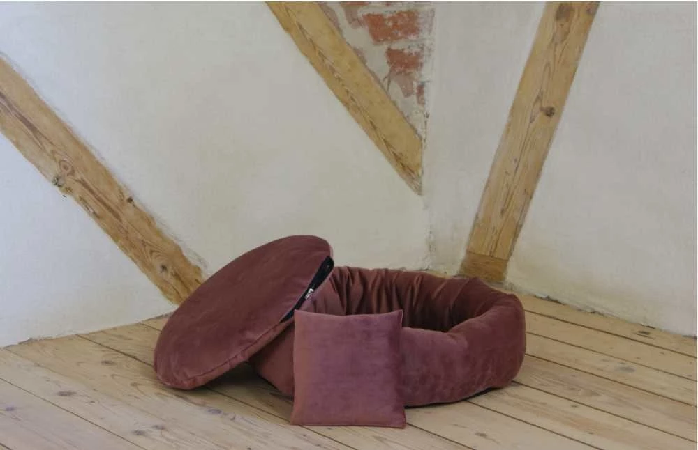 Een heerlijke zachte ronde hondenmand die is gemaakt van trendy rood fluweel. De mand heeft een los binnenkussen en de hoes is afneembaar. In diverse maten leverbaar. De mand heeft nog een sierkussentje. Dit product is volledig in Duitsland gemaakt.