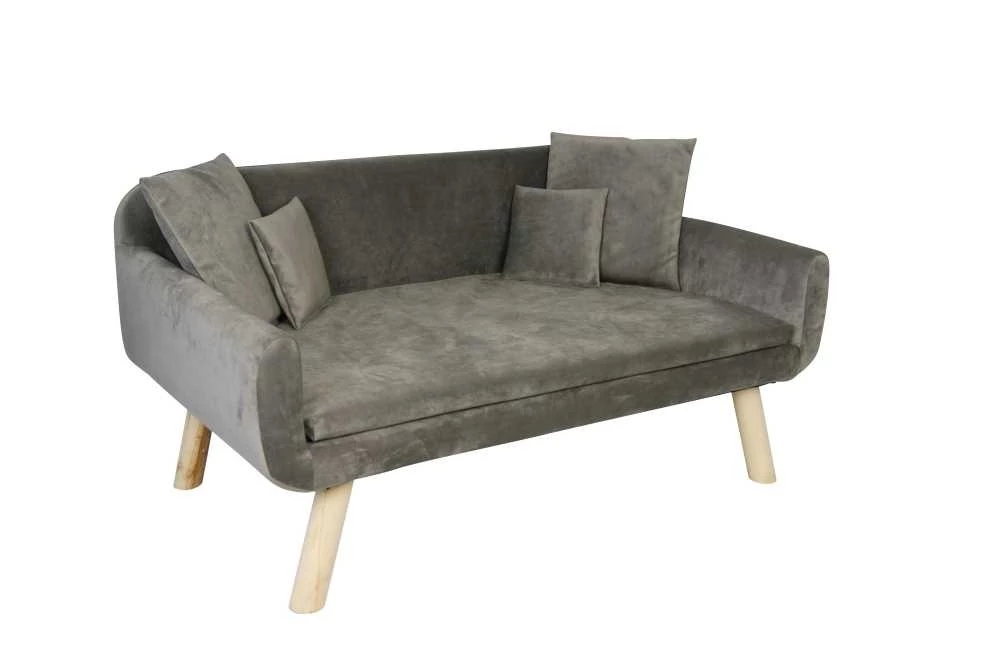 Deze taupe hondensofa voor de kleinere hond is uitgevoerd in polyester van goede kwaliteit. De mand is voorzien van vier losse kussentjes met een fleece vulling. De hondenmand heeft een zachte vulling zodat uw hond er heerlijk op zal liggen. De moderne vorm zal in vrijwel ieder interieur een echte blikvanger zijn. Dit product wordt volledig in Duitsland geproduceerd.