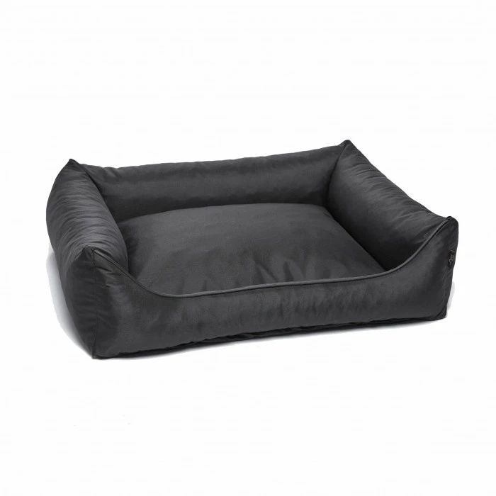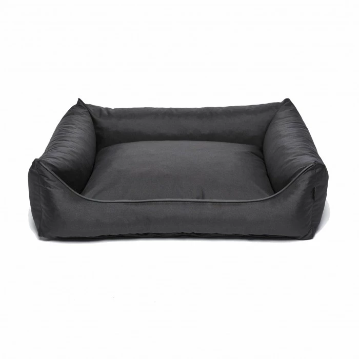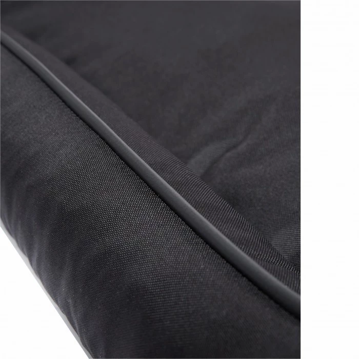 Deze stijvolle zwarte hondenmand is gemaakt van Cordura stof. De hoes kunt u afrtitsen en op 30 graden wassen. Deze comfortabele hondenmand is van een hoge kwaliteit cordura met een coating aan de binnenzijde. Door een fijne weeftechniek is er een optimale hoeveelheid materiaal gebruikt. De stof voelt daardoor sterk, maar toch zeer soepel aan. Een stevig gevulde rand zorgt ervoor dat uw hond lekker met de kop erop kan liggen. Aan de binnenzijde van de mand zitten de stevige ritsen van de hoes weggewerkt.