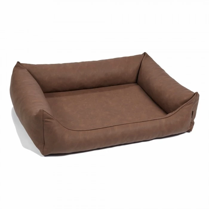 Dit is een moderne en trendy hondenmand die fraai is uitgevoerd met een uitneembaar los kussen. Het geheel is uitgevoerd in een hoge kwaliteit kunstleer. De randen zijn stevig gevuld en deze zijn zeer comfortabel voor de hond. Zij geven de juiste ondersteuning aan uw hond voor de rug en de kop. De hoes is wel afritsbaar, maar niet wasbaar.