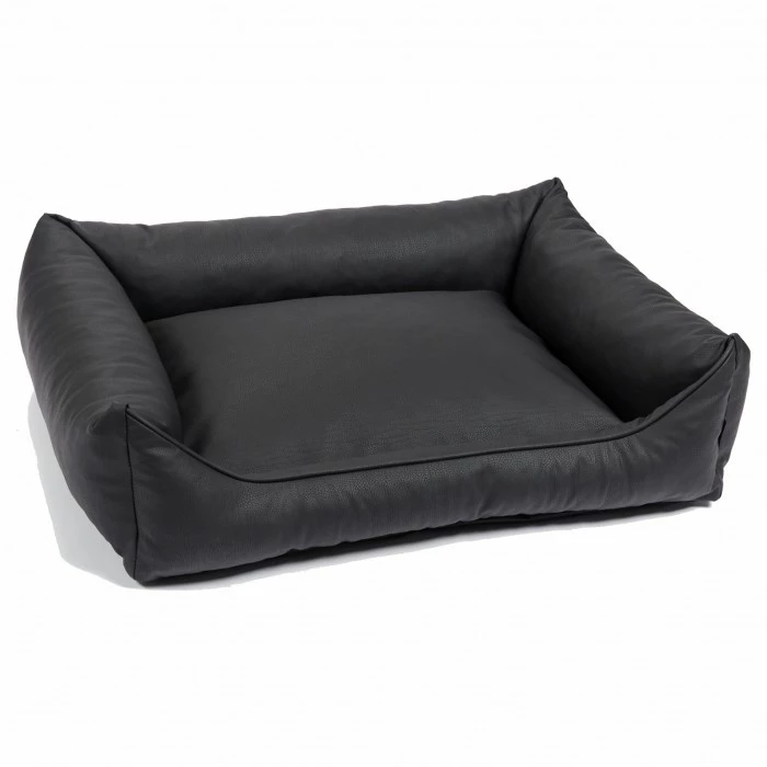 Een stijlvolle en comfortabele zwarte kunstleren hondenmand in een stevige kwaliteit met een afritsbare hoes. Het kunstleer is gemakkelijk te reinigen met een vochtige doek en een stofzuiger. Een ander voordeel van kunstleer is dat ongedierte er niet in kan gaan nestelen en ook huidschilfers van het materiaal afglijden, waardoor er geen ongedierte op af kan komen.